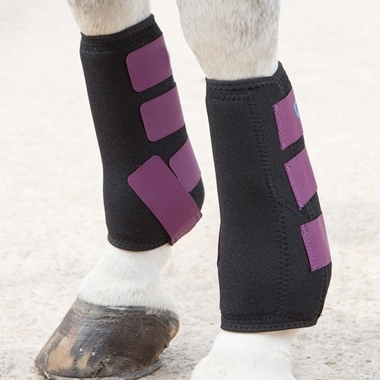 These boots offer total impact protection and support to fetlock, shins, tendons and ligaments. Double layer, impact-absorbing neoprene is soft and flexible for a comfortable fit and features micro-perforations to allow airflow, keeping the leg from over-heating. Touch close straps for security, shaping at the fetlock and brush clean outers. Front or hind use.