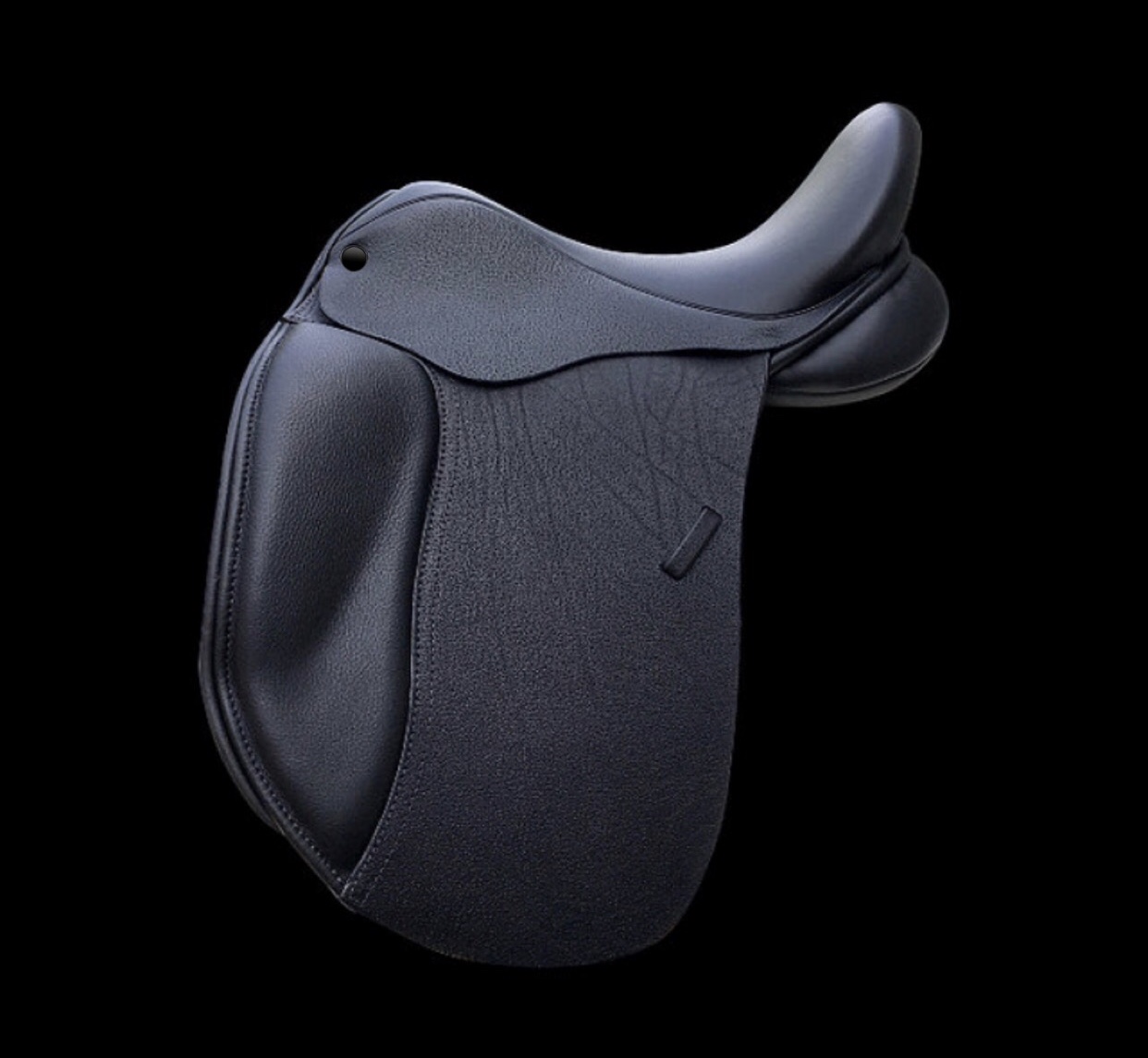 This saddle has high positioned knee blocks, 4 strap girthing and moulded knee pads providing a very secure seat. It is designed for wider riding horses and sporty natives and horses that are medium wide to extra wide with some wither height . An ideal saddle for warmbloods, Iberian horses and flat backed sport horses. It can be ordered with an extra soft seat as an additional option, there are also custom leather options available at an extra cost.