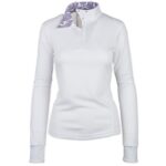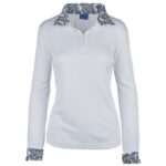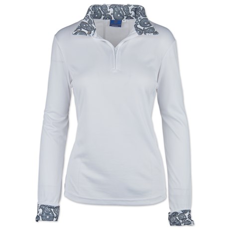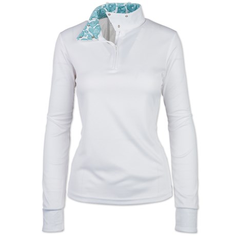 • Ideal for barn chores, schooling, and the show ring, this trendy top is complete with a fashionable printed collar and cuffs.