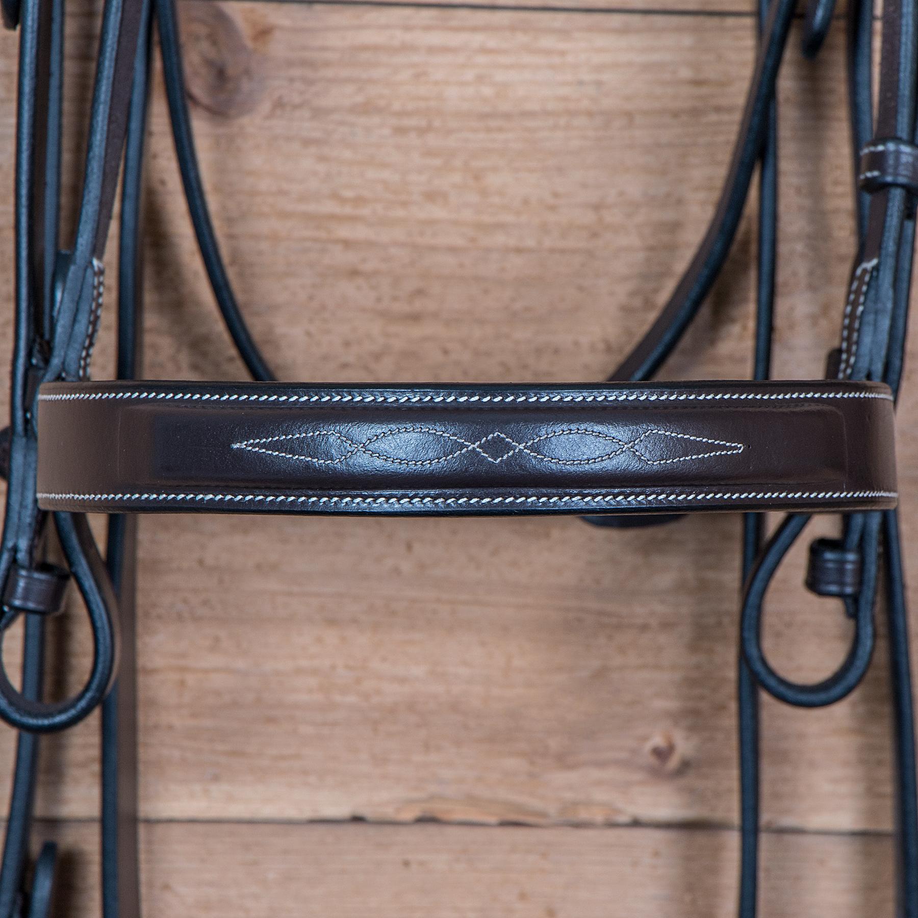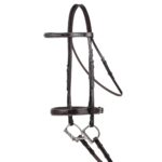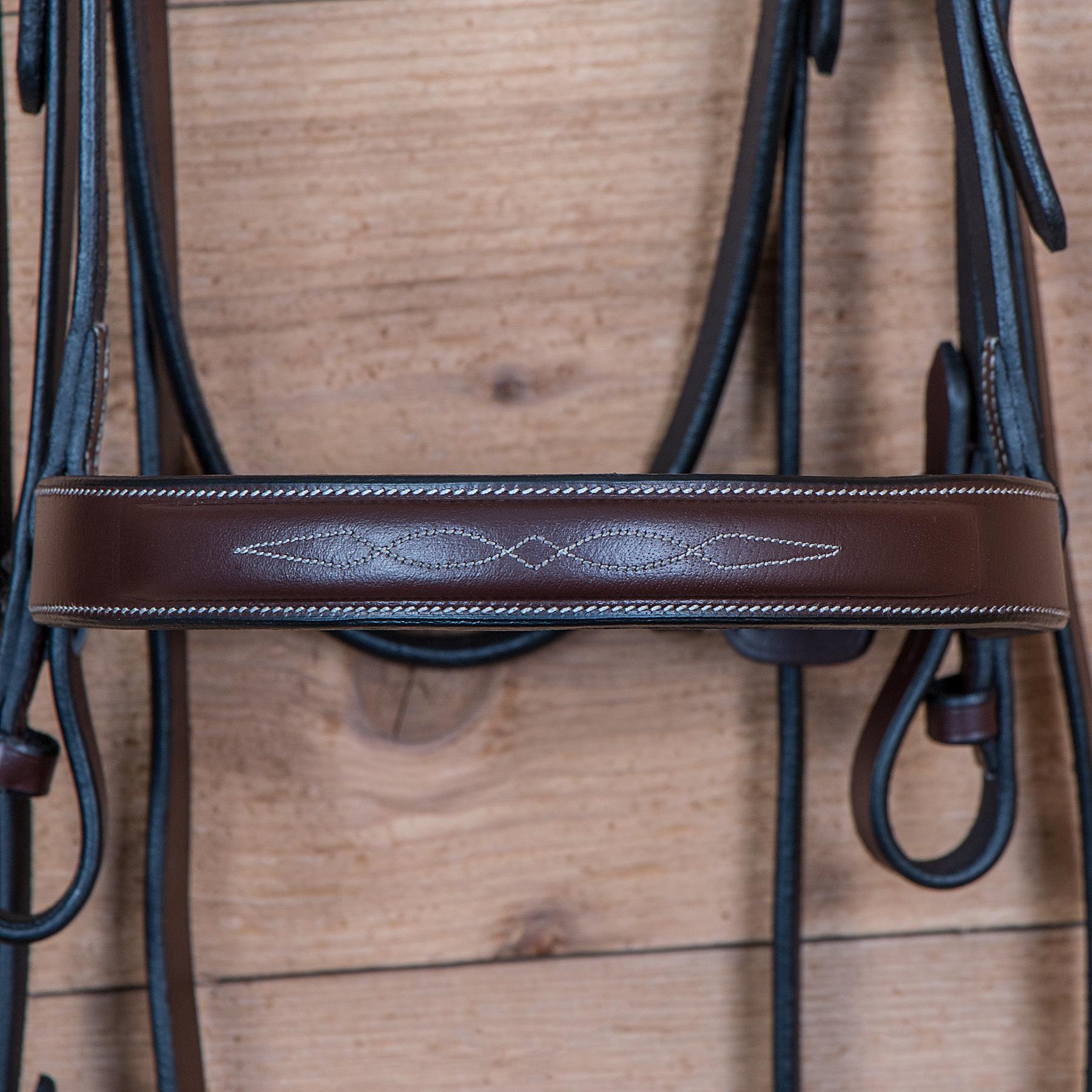 - Traditional, plain leather crown with 1/2″ cheeks and 3/8″ hanger and throatlatch