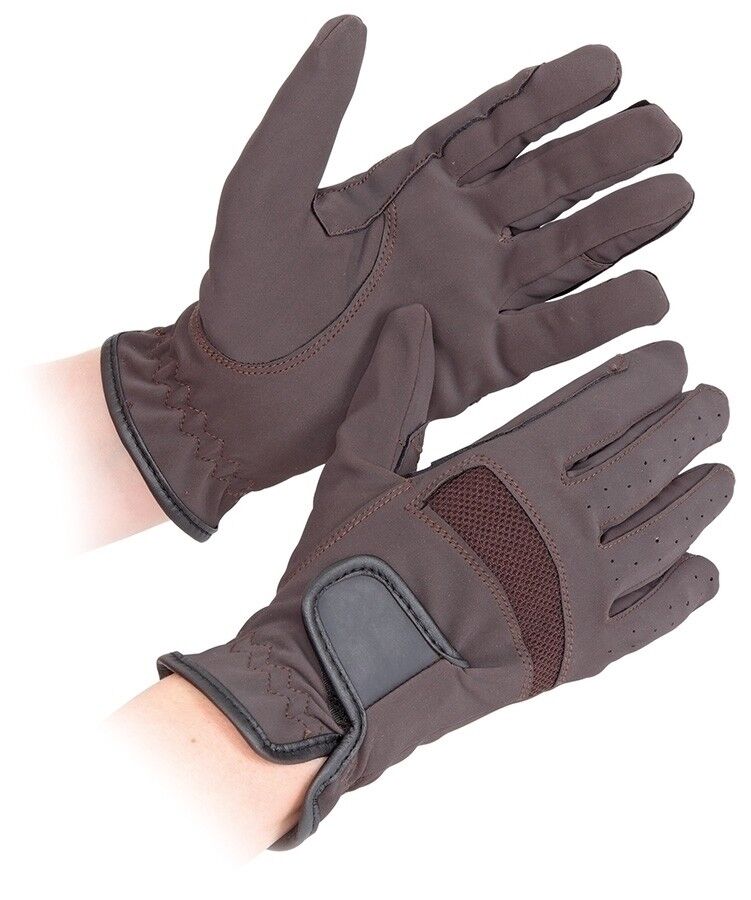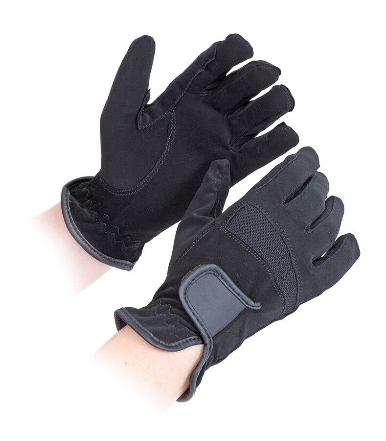 Lightweight, stretch synthetic featuring stretch knuckle panels for a comfortable fit, adjustable touch close wrists and reinforced riding grips.