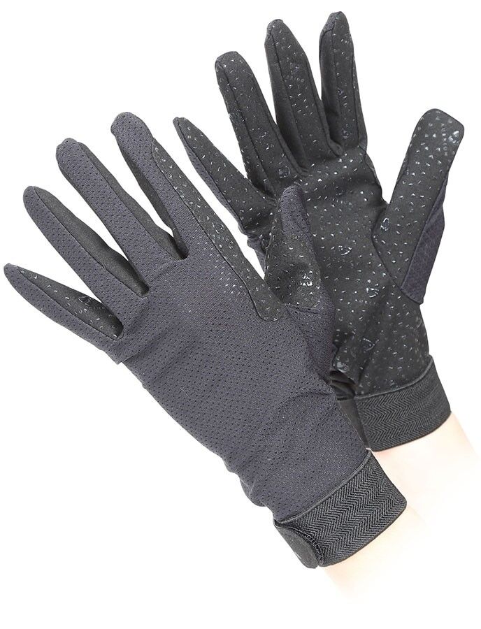 Lightweight and breathable, these sporty gloves keep hands cool while still offering great grip. Perforated panels allow greater air flow and flexibility, while suede palms and silicone grips assist with a secure contact on the reins. Elasticated wrists and touch close adjusters.