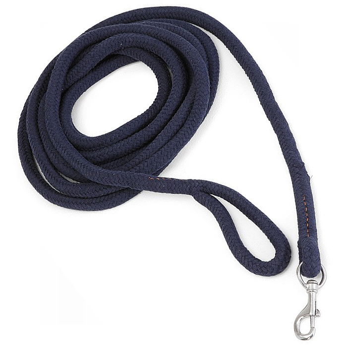 Rope lunging rein with swivel trigger clip at one end and hand loop at the other.