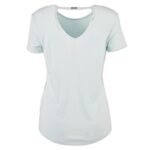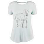 - Features include a relaxed fit that flatters, lightweight and breathable, feminine neckline, short sleeve, curved hem line for extra coverage in an out of the saddle