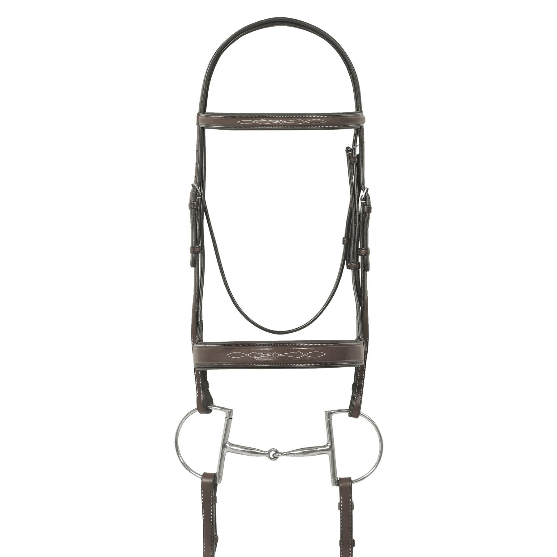 A show bridle that fits right in the hunter and equitation ring with it’s wide, fancy stitched noseband.