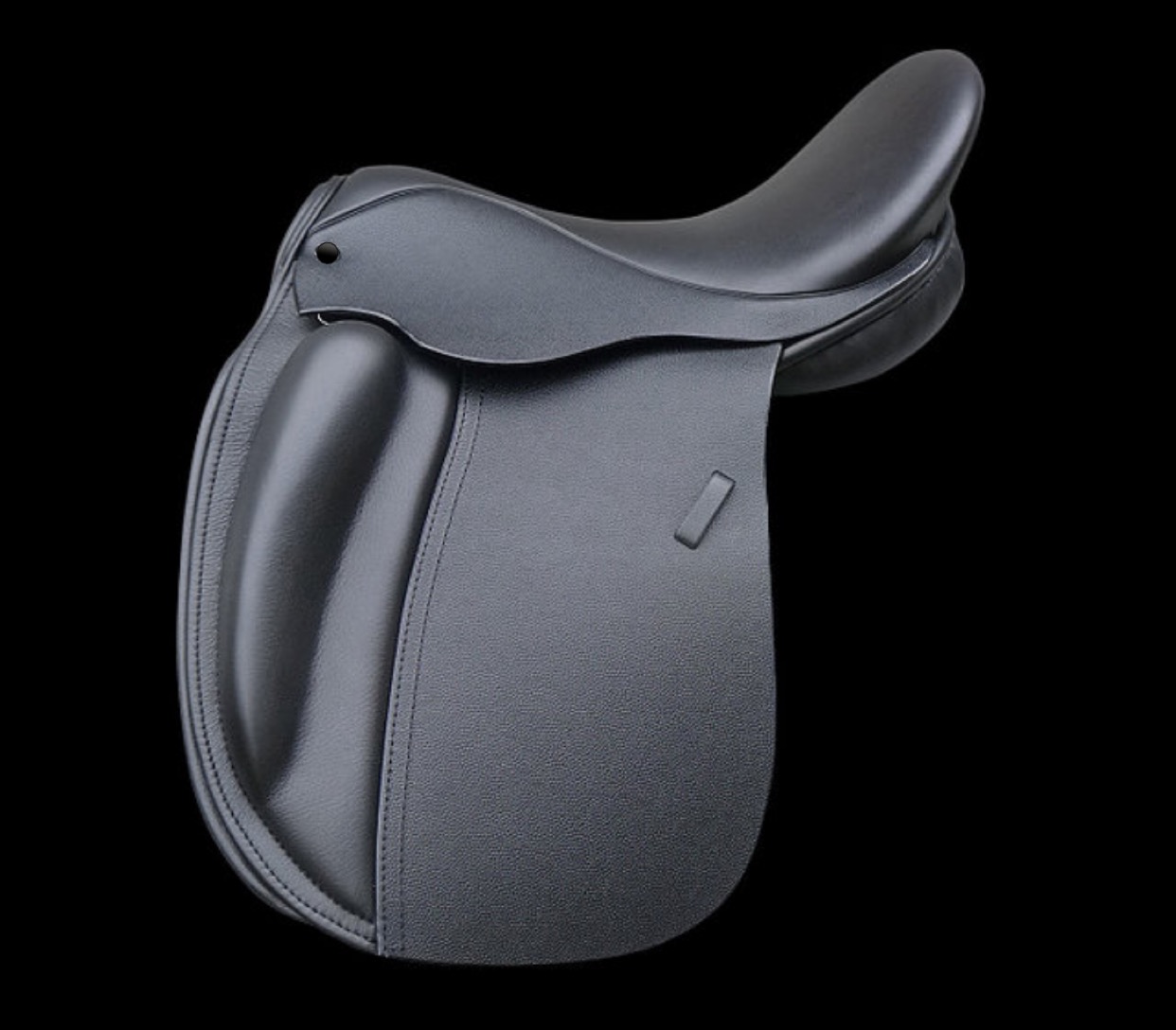 Our new Super dressage saddle has been developed to provide an enhanced fit on horses that are very short backed and croup high, such as some cobs and natives. This is because it has a flatter tree along with shorter and flatter close contact wool flocked panels. In addition our forward and high set block means a super close contact feel for the rider’s legs on very wide rib cages.
